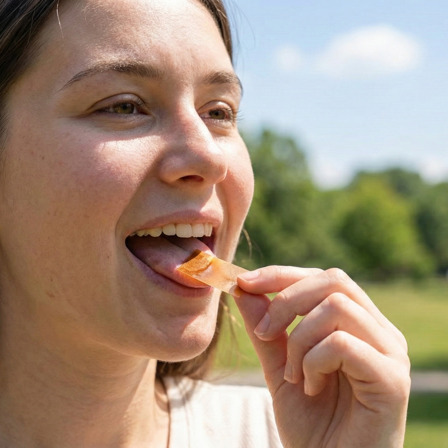 Place one strip on your tongue and let it dissolve. No water needed.
