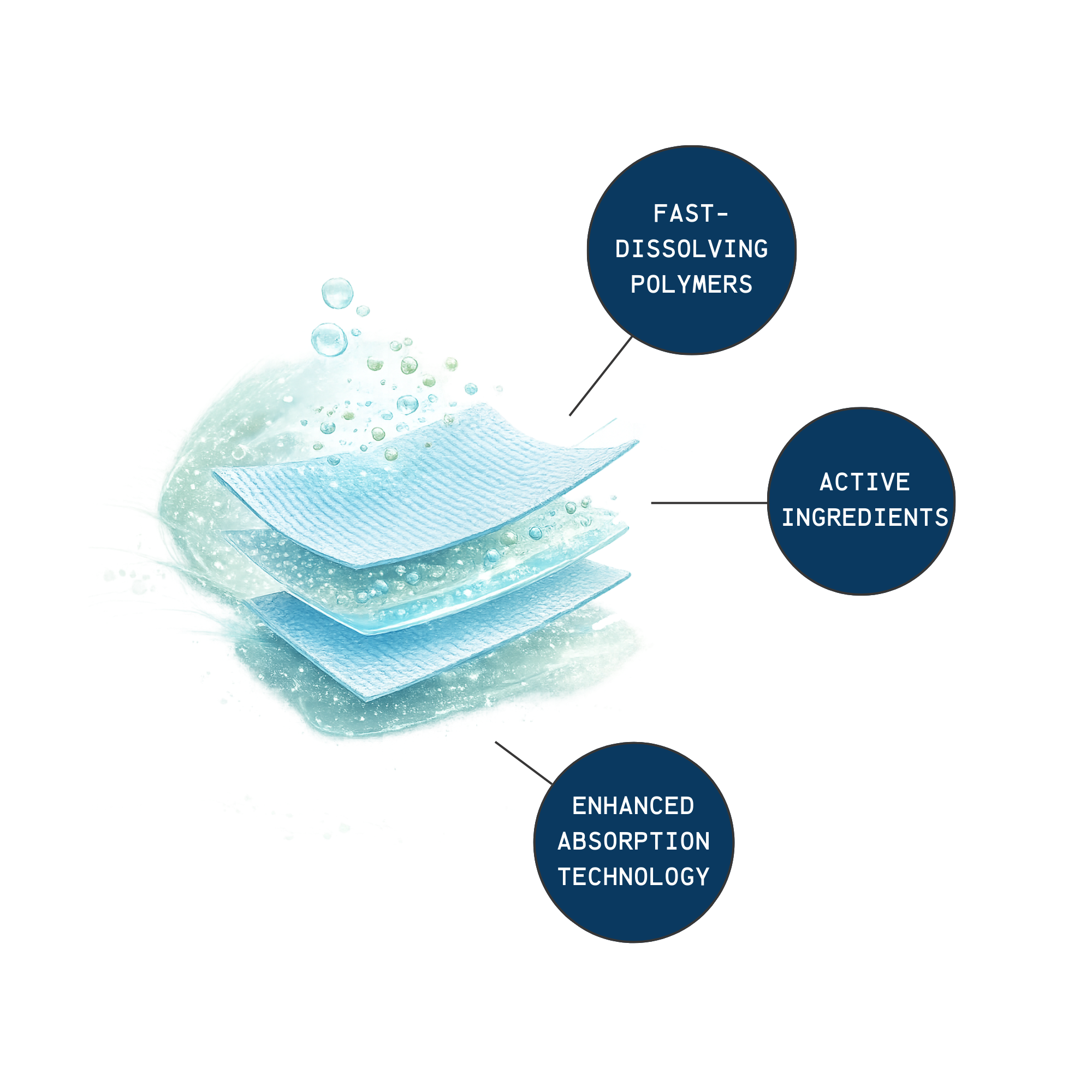 Once placed on the tongue the dissolving strip rapidly dissolves in saliva. Compared to traditional supplement forms, dissolving strips create more convenience as well as portability.